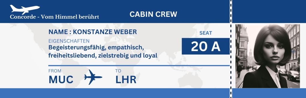Auch herzliche Feindschaften ergeben sich von Anfang an. So ist es auch bei Konstanze und Bridget. Sicherlich sind euch Menschen wie Bridget bereits begegnet, besserwisserisch, herablassend und freundlich ins Gesicht lächelnd. Sie scheinen stets die Beliebtsten und die Besten zu sein, und gar prädestiniert, überall hinzukommen, wo man selbst gerne wäre. Spannend dürfte es werden, wenn Konstanze und Bridget bei der Auswahl der Concorde-Crew wieder aufeinandertreffen. Obwohl eine Crew nur so gut ist wie ihr Zusammenhalt, dürfte es genug Zündstoff geben …